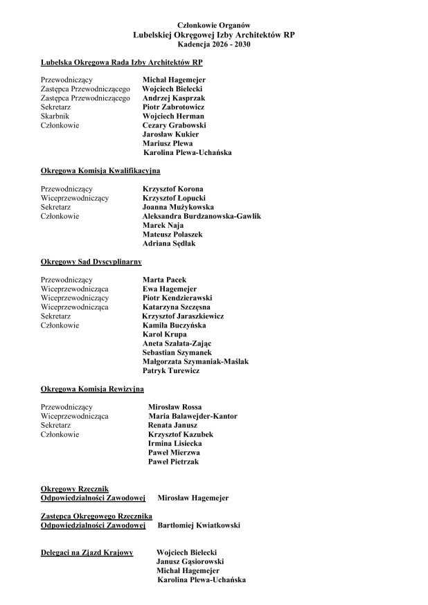 Lubelska Okręgowa Izba Architektow RP - kadencja 2026-2030